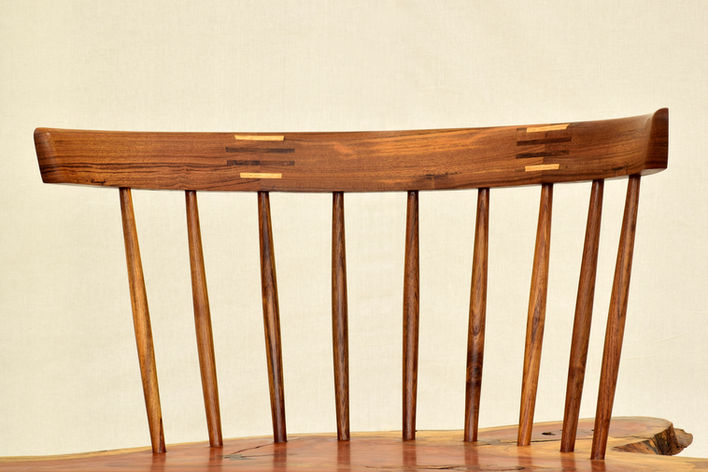 The spindle back and the simple legs in various combinations become the bench series, in different sizes. Many stages of polishing and oiling have revealed the unique nature of each plank. The more these benches are used the richer they will become! The generous scale of the benches mean that they can be used in different ways, and most of all, they invite company.
