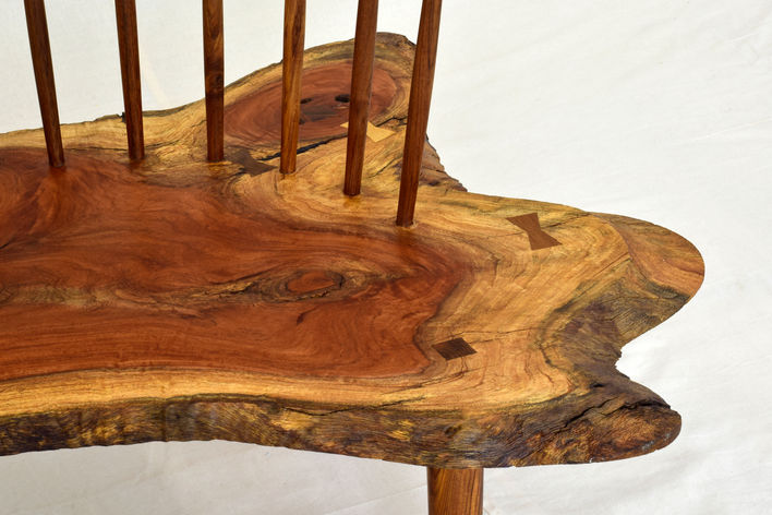 Our own intervention is to stabilise the possibility of further movement with the butterfly joint that was the signature of the celebrated furniture maker, George Nakashima, and who is a great inspiration to us.